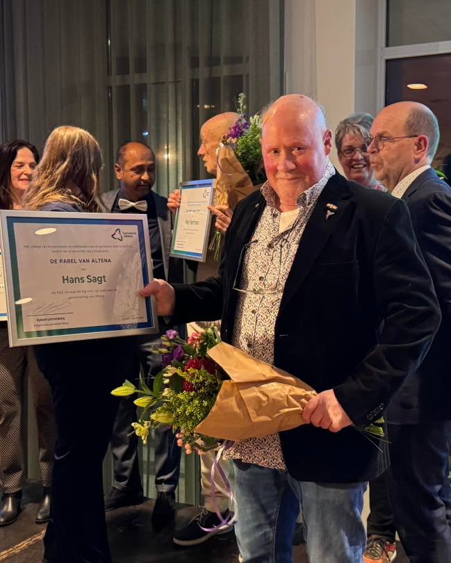 2 Januari zijn wij met gepaste trots bij de nieuwjaarsreceptie van Gemeente Altena geweest, waar onze eigen Hans Sagt de parel van Altena in ontvangst mocht nemen. Hij kreeg deze ereprijs door burgemeester Egbert Lichtenberg opgespeld voor zijn ruim 60 jaar inzet voor het klaiendams carnaval als onder anderen Prins en penningmeester. Hans, bedankt!